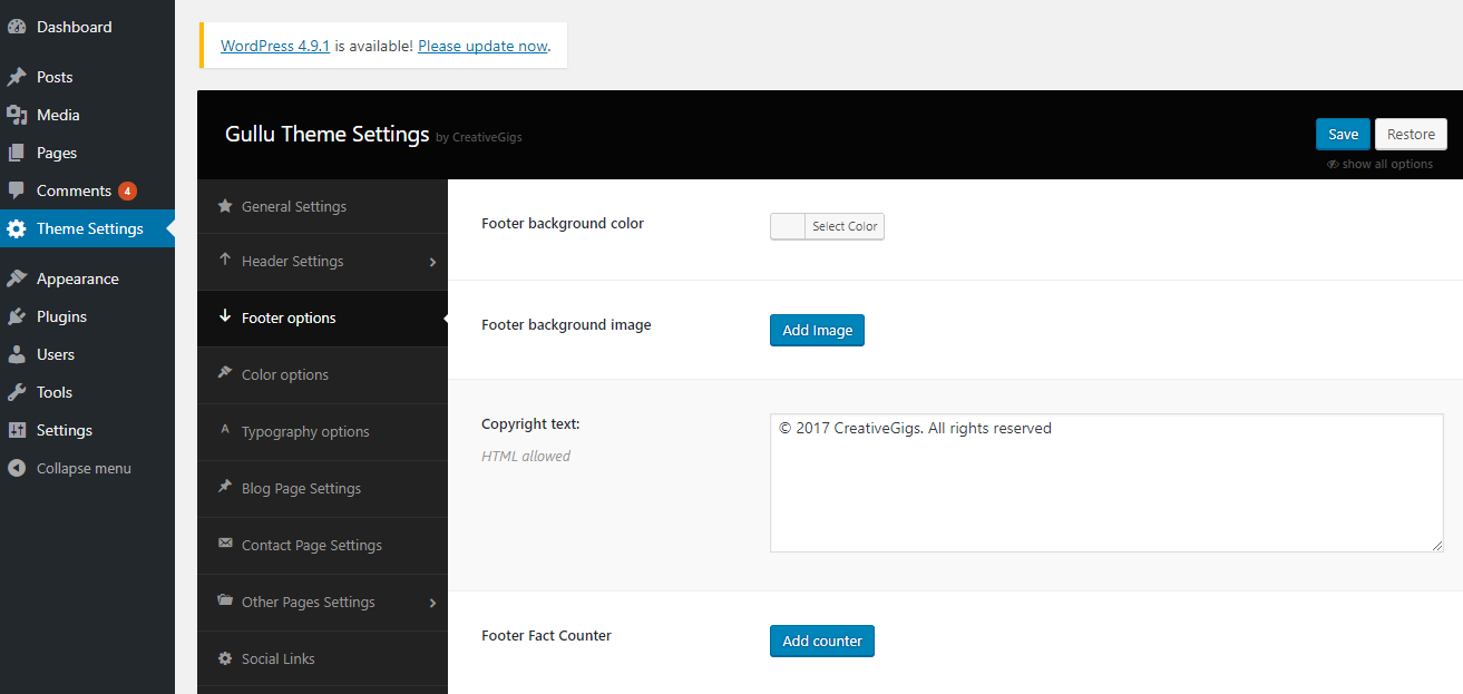 You can configure the footer area of the theme from the settings option. You will find all relevant section settings to the “Footer” option. Navigate to Theme Options > Footer Settings to go to this settings section. We provided all necessary instructions and descriptions with all the options.